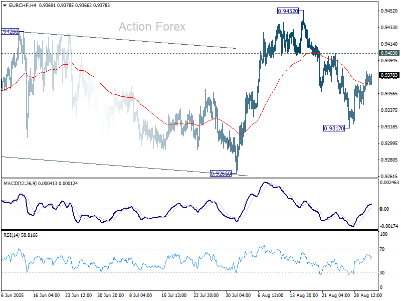 Denné pivoty: (S1) 0.9353; (P) 0.9368; (R1) 0.9390.