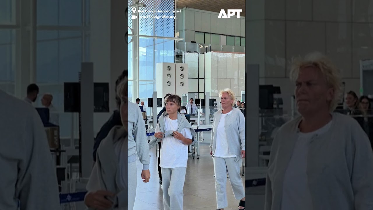 Izrael deportuje Gretu Thunberg a 171 ďalších aktivistov po tom, čo zadržal Global Sumud Flotilu, ktorá sa pokúšala doručiť pomoc do Gazy. Overené zábery z letiska ukazujú aktivistov odlietajúcich z letiska Bena Guriona.