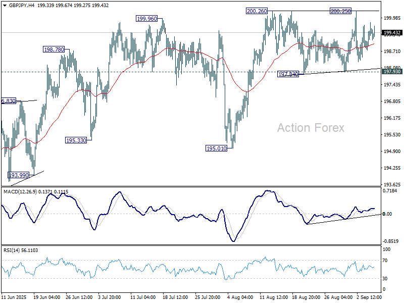 Denné pivoty: (S1) 198.88; (P) 199.36; (R1) 199.95.