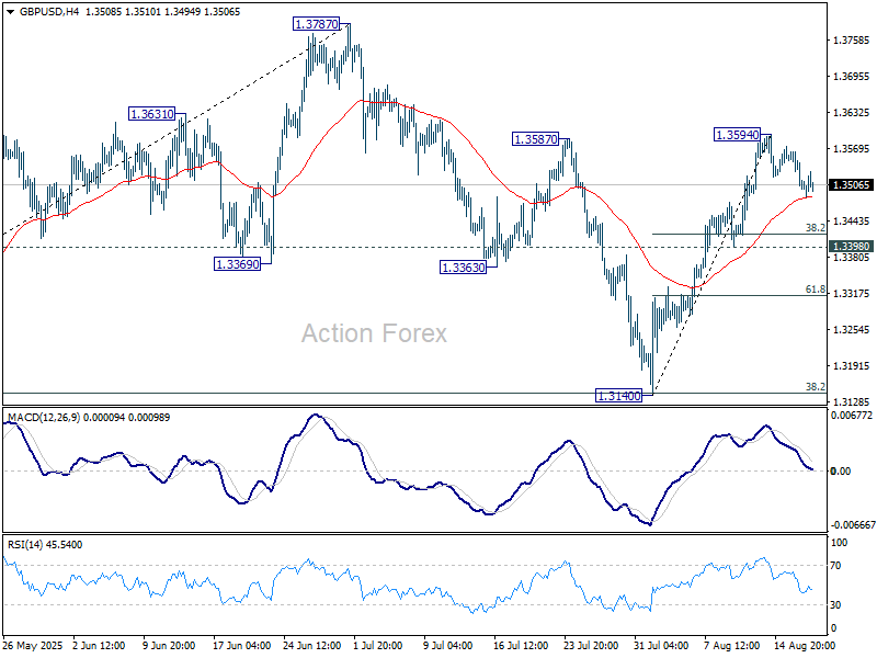 Intradenné nastavenie GBP/USD zostáva neutrálne a celkový výhľad sa nemení. Ústup od úrovne 1.3594 môže pokračovať smerom nadol, avšak pokles by mal byť obmedzený výrazne nad podporou na úrovni 1.3398. Na druhej strane, prekonanie úrovne 1.3594 obnoví rast z úrovne 1.3140 a povedie k opätovnému testovaniu maxima na úrovni 1.3787.