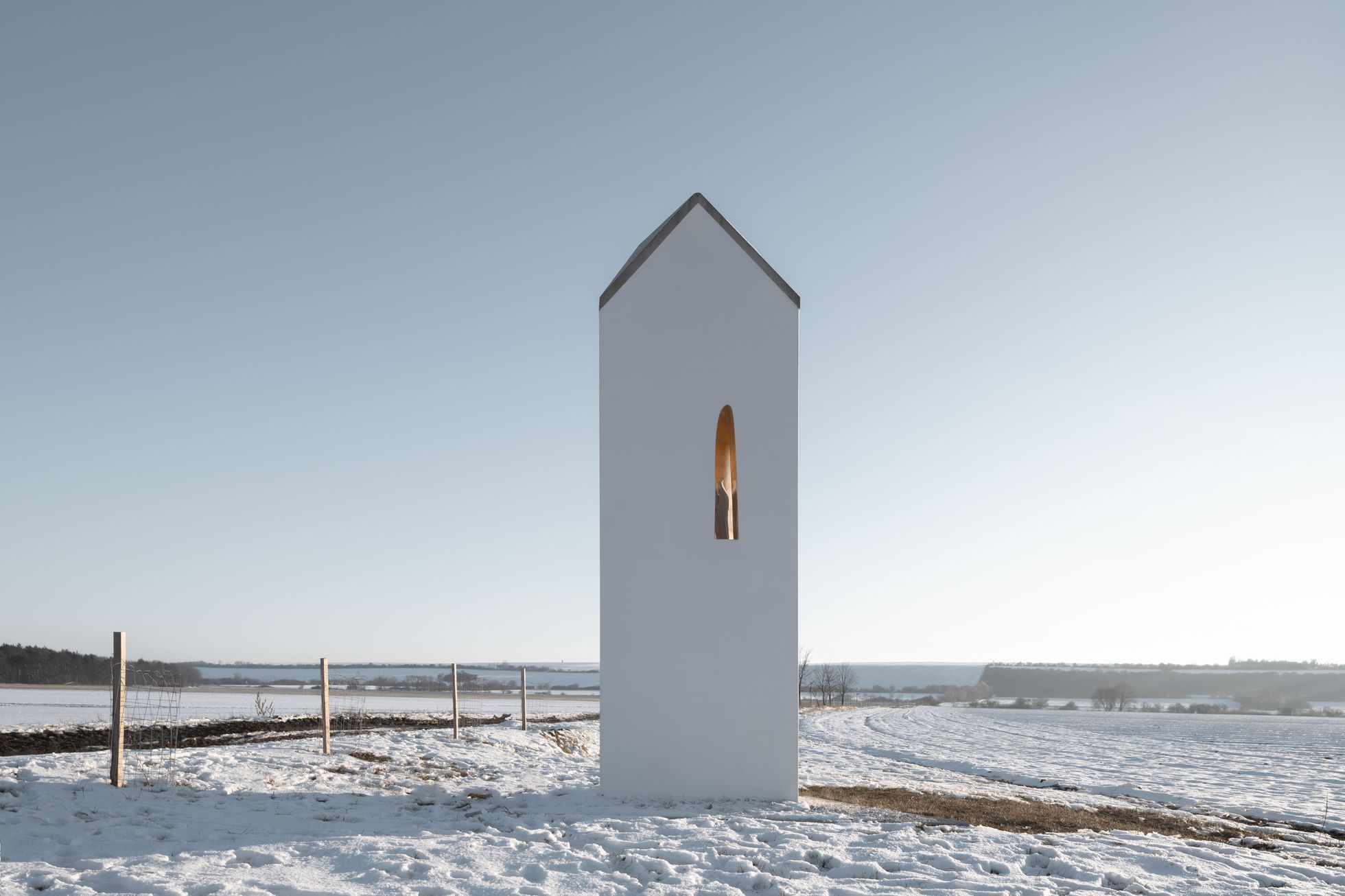 Zvonku pôsobí skromne, pokorne. V krajine sa nesnaží dominovať, ale byť jej prirodzenou súčasťou – rozcestníkom, akým bola i predtým. Jej forma pripomína staré kamenné smerovníky, ktoré dodnes môžeme stretnúť pri vidieckych cestách. Napriek tomu však nesie duchovnú hĺbku a moderný prístup k tvorbe sakrálnej architektúry.