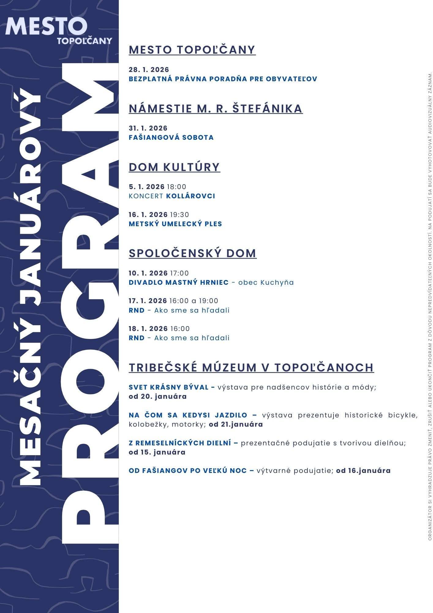 Kultúra Topoľčany: Nech sa páči…Pozývame vás na podujatia v mesiaci Január