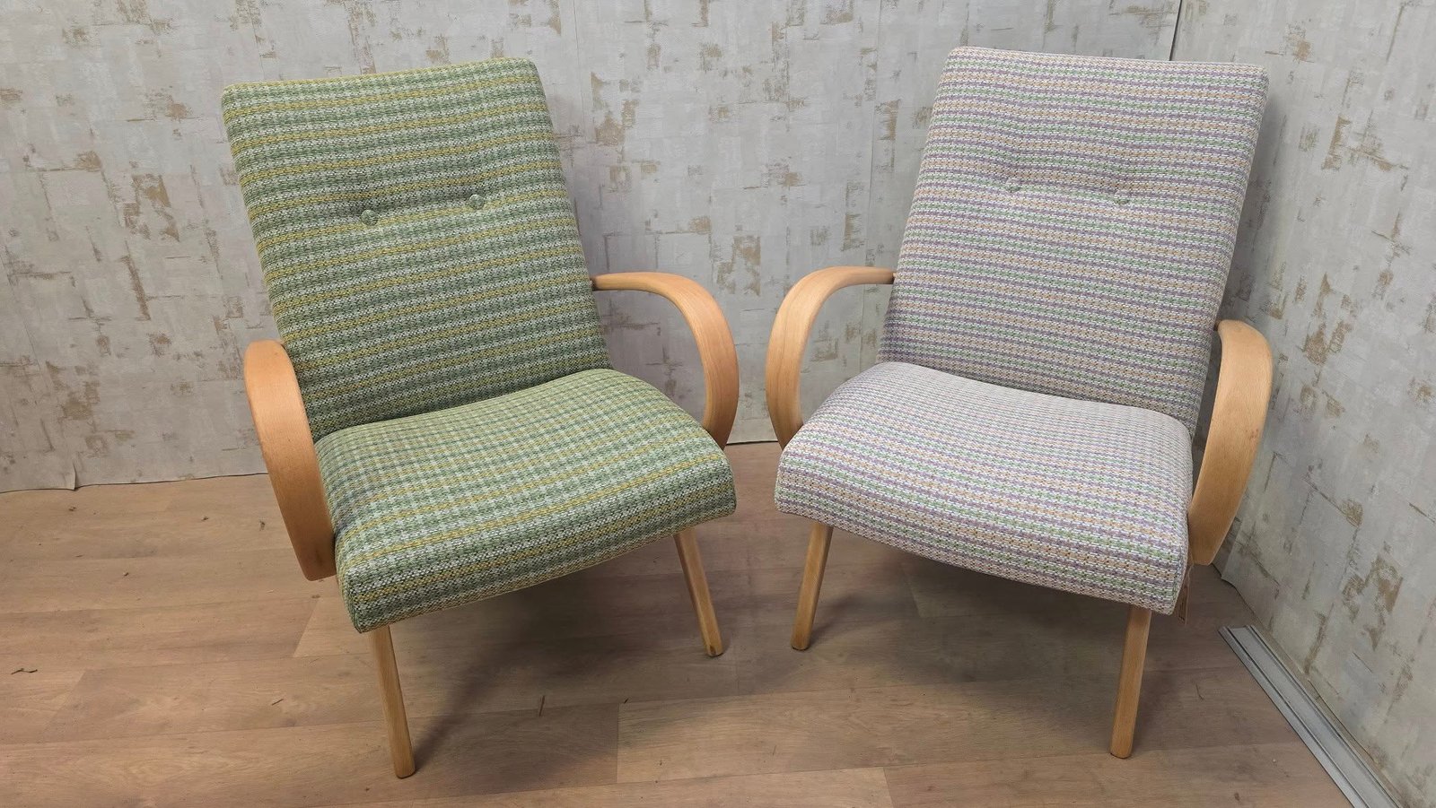 🧵 Látky s RETRO šarmom sú srdcom celého projektu. Výber prémiových melírovaných textúrnych látok od nemeckej značky Höpke, ktoré sú synonymom odolnosti a autentického retro vzhľadu: