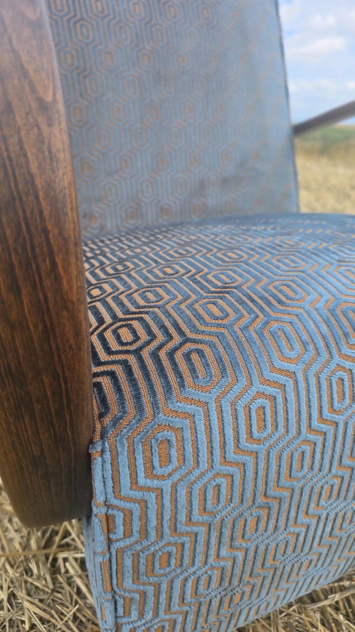 Všetko bolo odčalúnené až na holý skelet. Bol odstránený starý lak, vybrúsene drevo do surového stavu. Hĺbku a eleganciu vyzdvihol matný palisandrový odtieň. S kompletným repasom, kde som vymenil popruhový výplet, pružiny a výplne, som im dodal funkčnosť i vdýchol nový život.❤️