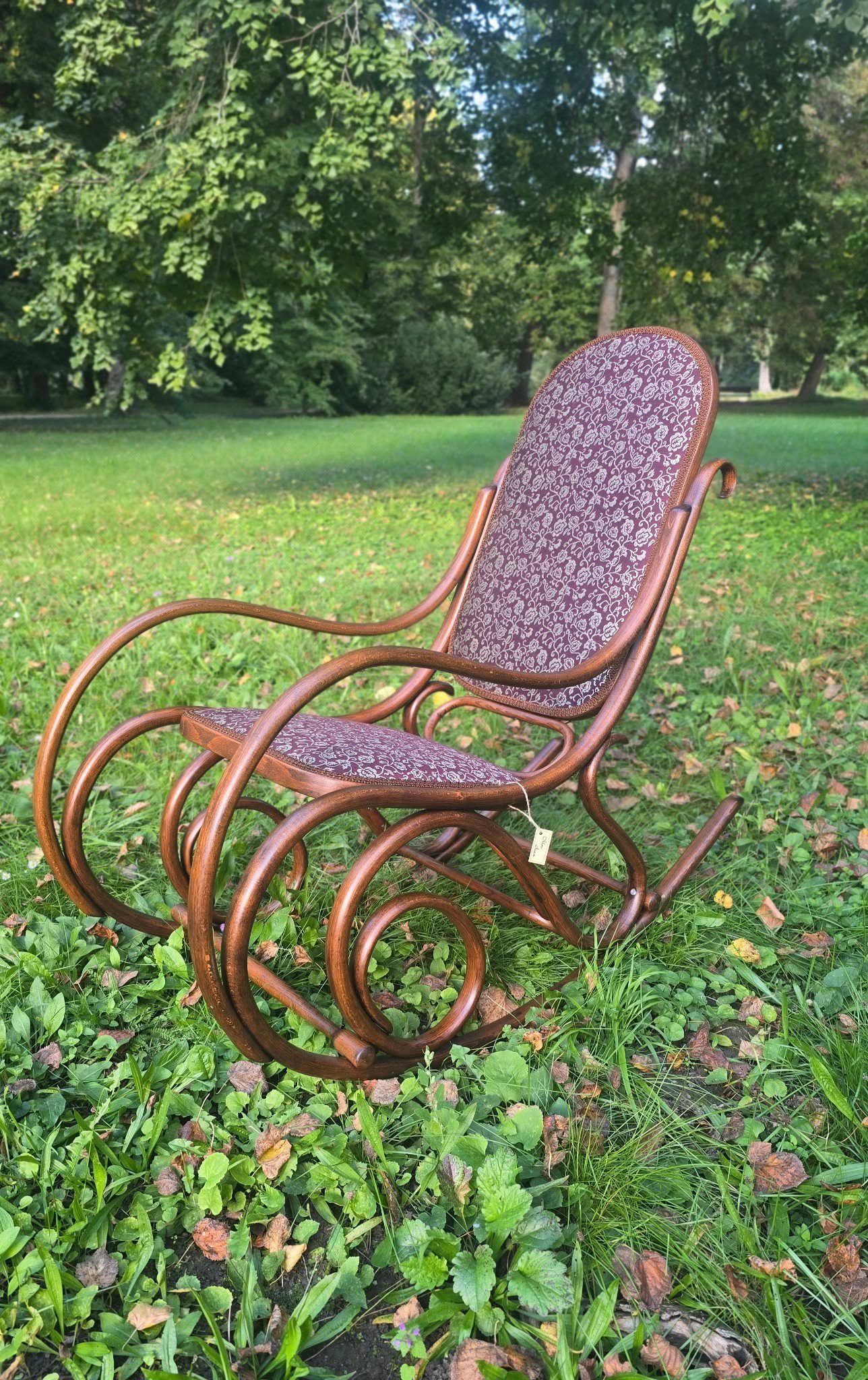 S veľkou radosťou vám predstavujem znovuzrodenie tohto nádherného hojdacieho kresla v štýle Thonet. Tento konkrétny kúsok, datovaný do rokov cca 1880–1920, je skutočný unikát a ja som mu vrátil pôvodnú slávu s nádychom histórie.