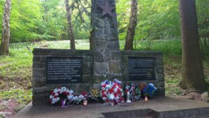 Po zoznámení sa s hrozným príbehom oboch osád sme pristúpili k osamelo stojacemu pamätníku obetiam protifašistického odboja, kde sme zapálením sviečok, vencom, krátkym príhovorom a nádhernými revolučnými piesňami uskutočnili spomienkový akt svorne s novými rovnako zmýšľajúcimi priateľmi.