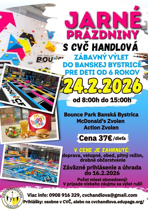 ➡ Prihlášky je potrebné doručiť alebo odovzdať do 16. februára 2026. Nájdete ich na webovom sídle CVČ Handlová, ale tiež v aktualite na webe mesta Handlová