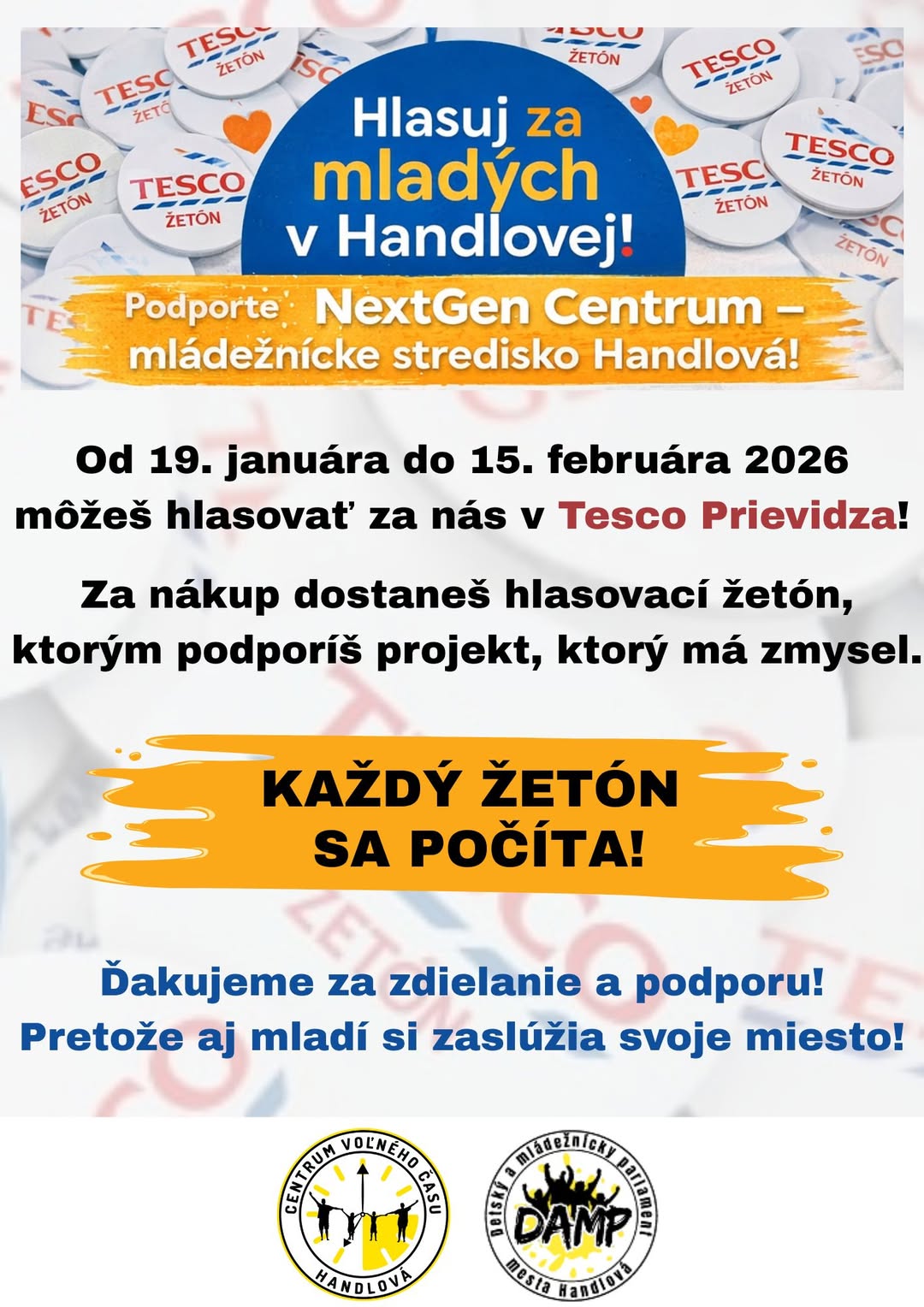 🟡 Hlasujte do 15. februára 2026 vhodením hlasovacieho žetónu v predajni Tesco Prievidza, ktorý získate za nakúp.