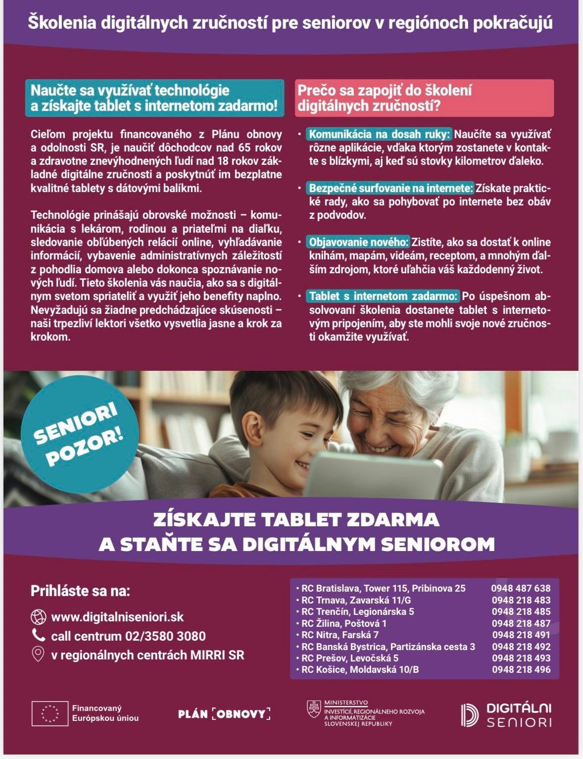 Milí seniori, drahí občania – prihláste sa a získajte digitálne zručnosti. ✅