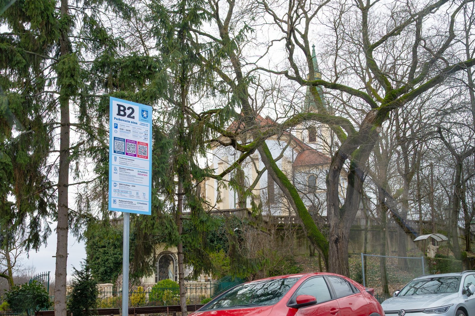 ➡ Pri kostole v zóne B2 je parkovanie cez víkendy a dni pracovného pokoja bezplatné, rovnako ako vo všetkých zónach B.