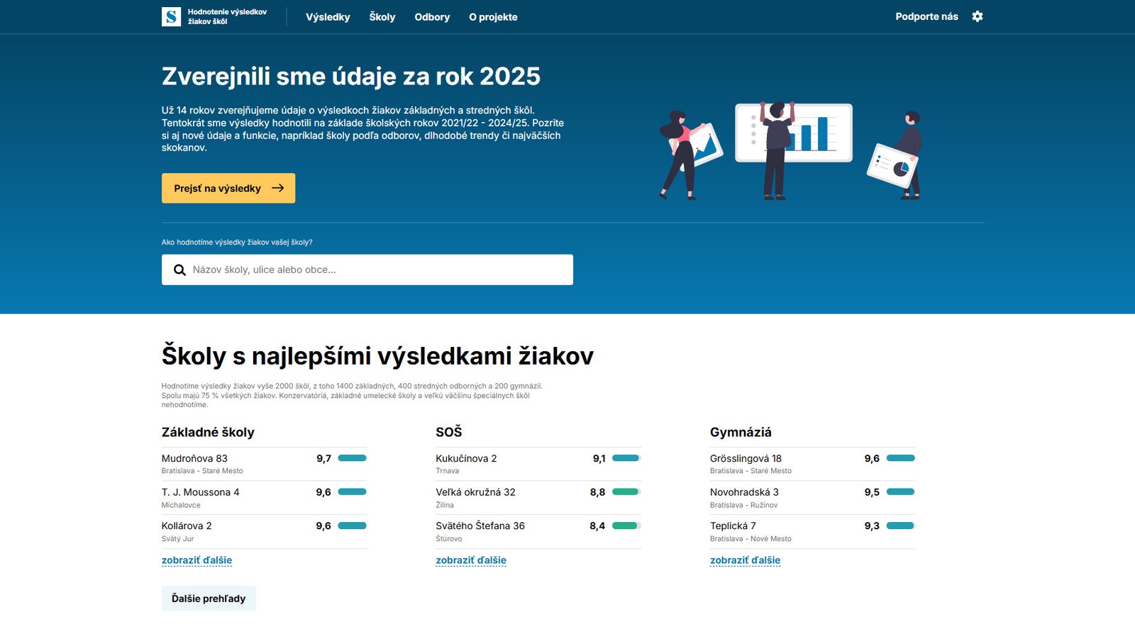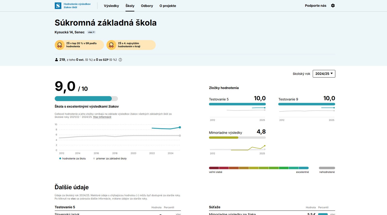 📈 Dlhodobo rastúce hodnotenie, top 20 % škôl v SR