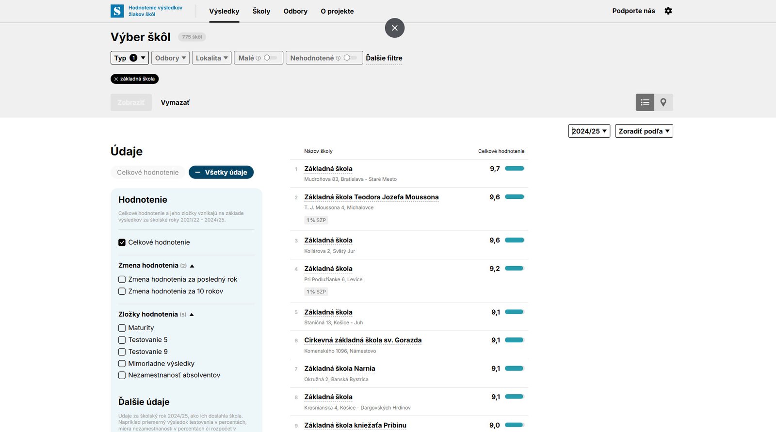 INEKO – Inštitút pre ekonomické a sociálne reformy zverejnil aktuálny rebríček základných škôl na Slovensku za školský rok 2024/2025. Hodnotenie vychádza z dlhodobo sledovaných výsledkov žiakov a ich zlepšovania.
