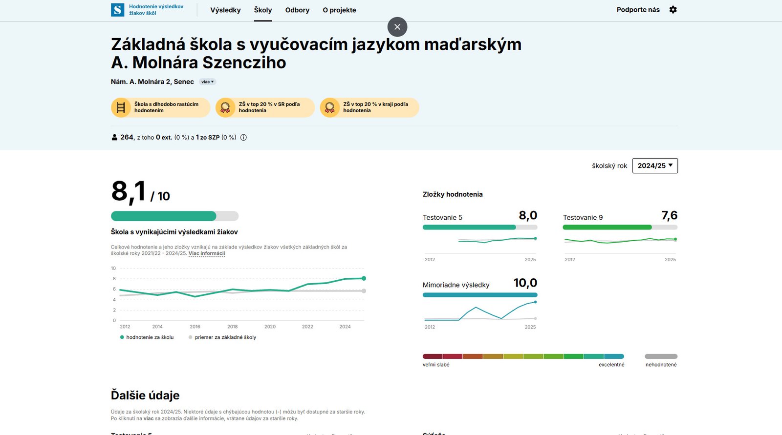 📈 Dlhodobo rastúce hodnotenie, top 20 % škôl v SR aj kraji