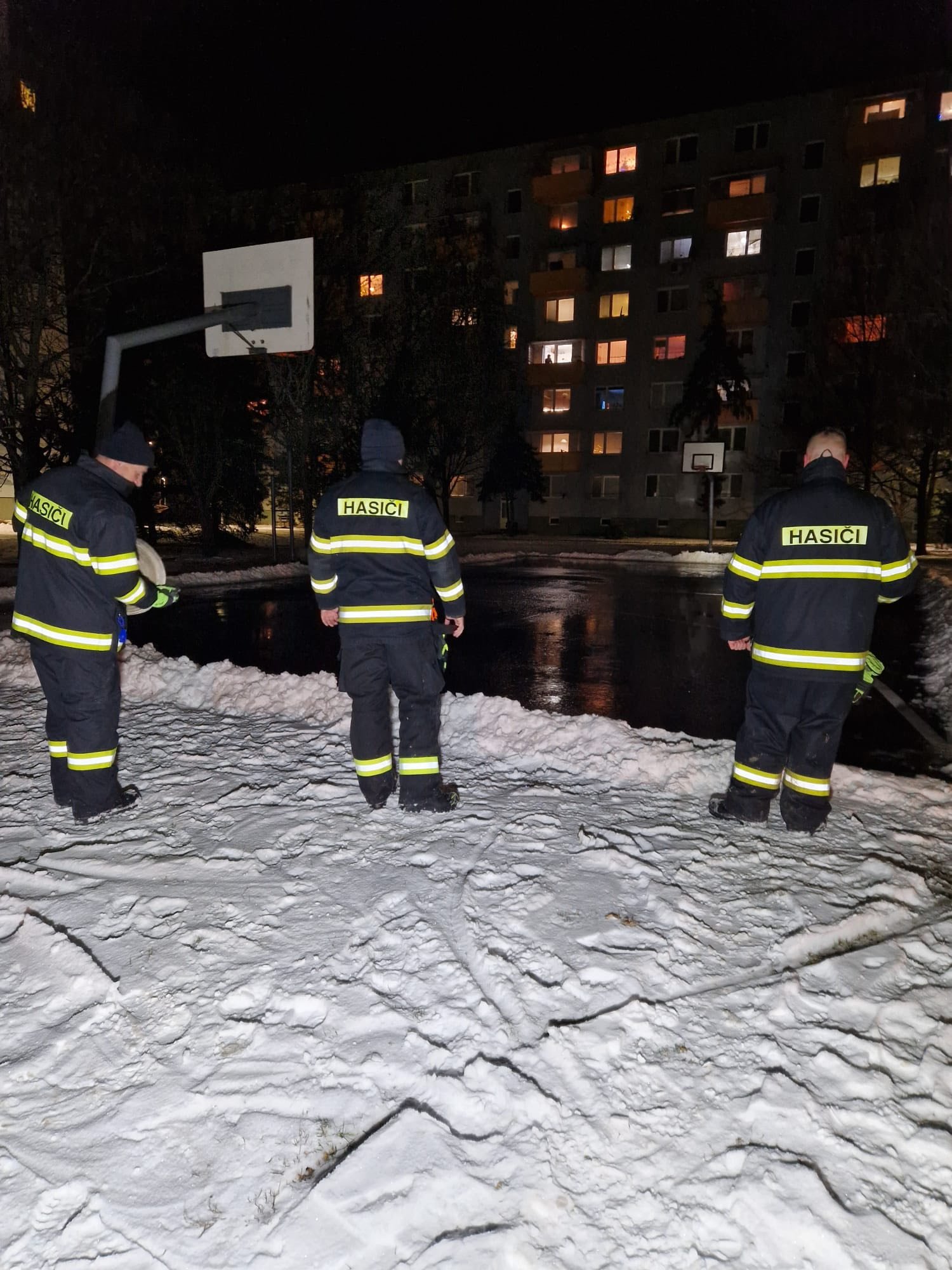 VEPOS s.r.o., Vráble dnes dopoludnia pripravil plochu basketbalového ihriska vo vnútrobloku pri BD 1225 a BD 1129 a podvečer sa do akcie pustil DHZ Dyčka – DHZM Vráble. Pri –7 °C začali polievať plochu a dávajú mrazu jasný signál, že je čas spolupracovať.
