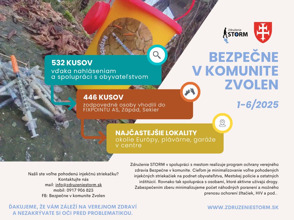 📌 Vďaka spolupráci zmizlo z verejných priestranstiev mesta za prvých šesť mesiacov 978 kusov injekčných striekačiek.