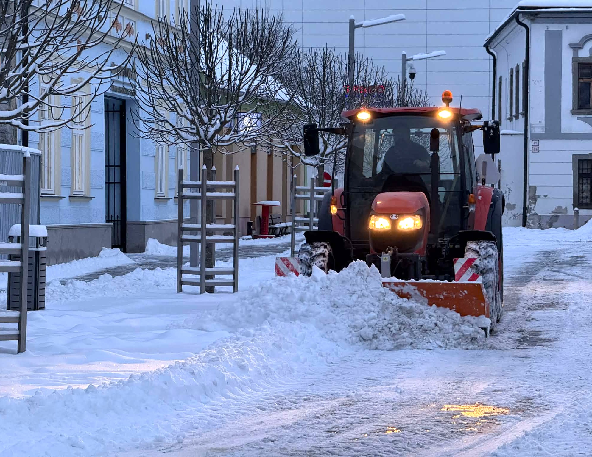 Od večerných hodín sú v teréne technika a pracovníci, ktorí zabezpečujú čistenie nášho mesta. Do rána napadlo približne 20 cm snehu. Napriek rýchlej reakcii pochopiteľne nie je možné takéto množstvo pri sústavnom snežení odstrániť okamžite.