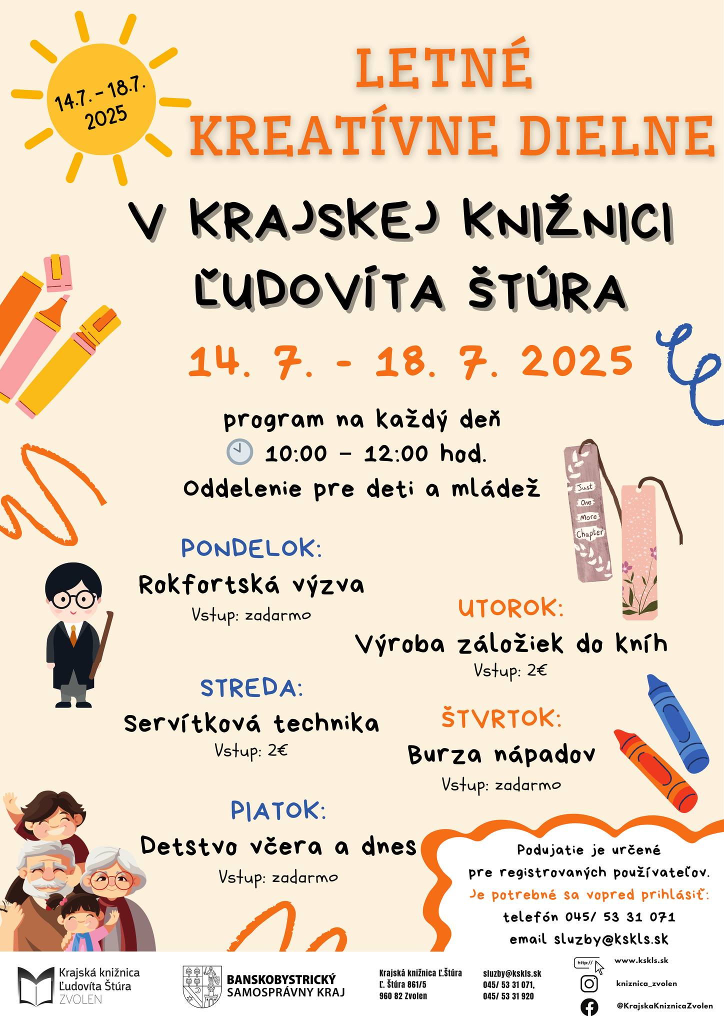 Letné kreatívne dielne. Týždeň plný tvorivosti, zábavy a čítania – 14. – 18. 7.