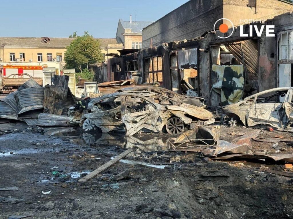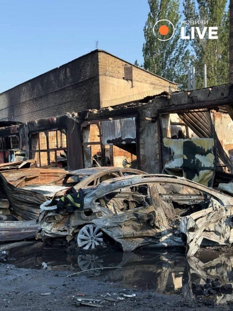 V Solomjanskom okrese spadli trosky zostreleného dronu na autoumyváreň, pričom poškodili vozidlá a vodovodné potrubie (ako je vidieť na fotografii).