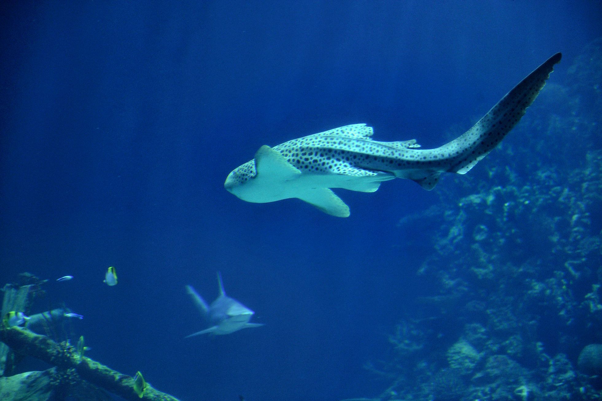 Morský biológ Hugo Lassauce z austrálskej University of the Sunshine Coast sleduje pri Novej Kaledónii populáciu žraloka leopardieho v jeho prirodzenom prostredí. Pri šnorchlovaní spozoroval pri piesočnom dne pohyb troch jedincov – dvoch samcov a jednej samice.