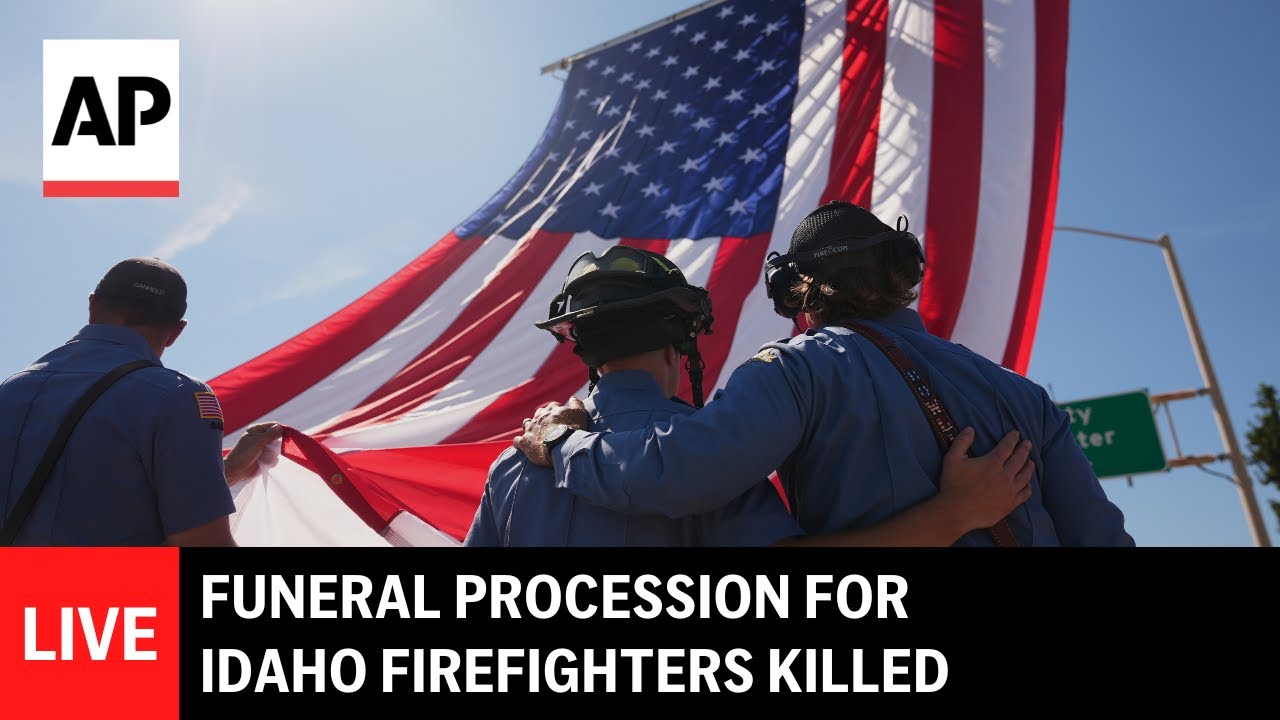 Živý prenos pohrebného sprievodu za hasičov z Idaha, ktorí zahynuli po streľbe počas zásahu pri lesnom požiari neďaleko Coeur d’Alene, Idaho. Autor: KXLY.