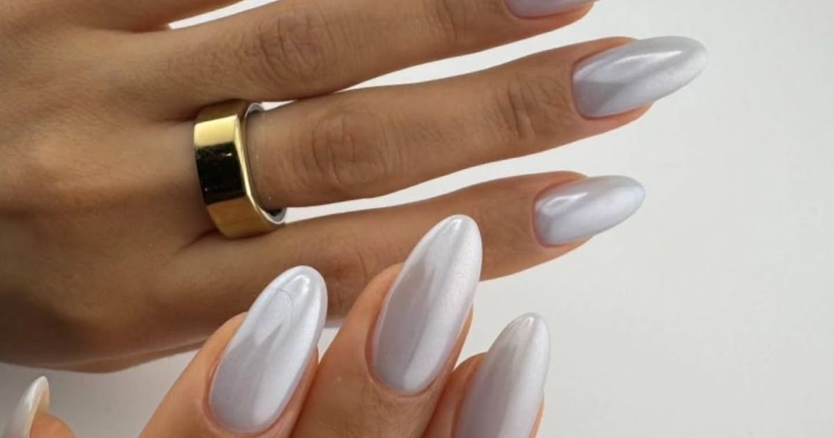 Čisté strieborné chrómové nechty v kombinácii s dokonalým tvarom a dĺžkou vytvoria sofistikovaný a ženský vzhľad.