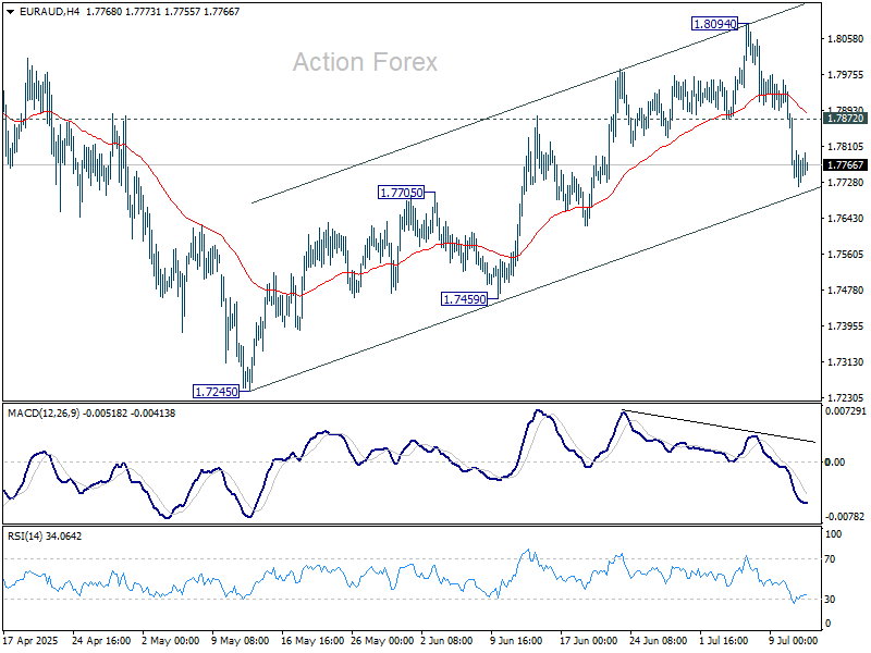 EUR/AUD minulý týždeň vzrástol na 1,8094, no následne sa od tejto úrovne odrazil. Tento vývoj naznačuje, že rebound od úrovne 1,7245 bol dokončený v podobe trojvlnového pohybu až na 1,8094. V tomto týždni sa očakáva pokračovanie poklesového trendu. Stabilné obchodovanie pod 55-dňovým kĺzavým priemerom (EMA), ktorý sa aktuálne nachádza na 1,7694, by mohlo signalizovať, že korekčný pattern od vrcholu 1,8554 už vstúpil do tretej fázy. V takom prípade by sme mohli očakávať ďalší pokles smerom k supportu na 1,7245. Napriek tomu, ak dôjde k silnému odrazu od 55-dňového EMA, mohlo by to udržať krátkodobý býčí trend a otvoriť cestu pre možný budúci rast nad úroveň 1,8094.