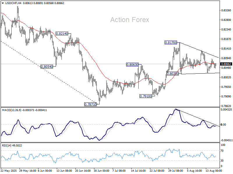 Pár USD/CHF ostal minulý týždeň v konsolidácii v rozmedzí 0,8020/8170. Počiatočný sklon zostáva tento týždeň neutrálny. V smere nadol, prelomenie hranice 0,8020 oživí prípad, že korekčný model od 0,7871 bol dokončený a zacieli na retest minima 0,7871. V smere nahor, pevné prelomenie 0,8710 obnoví korekciu od 0,7871. Denný sklon sa vráti smerom nahor pre 38,2% retracement z 0,9200 na 0,7871 na úrovni 0,8379.