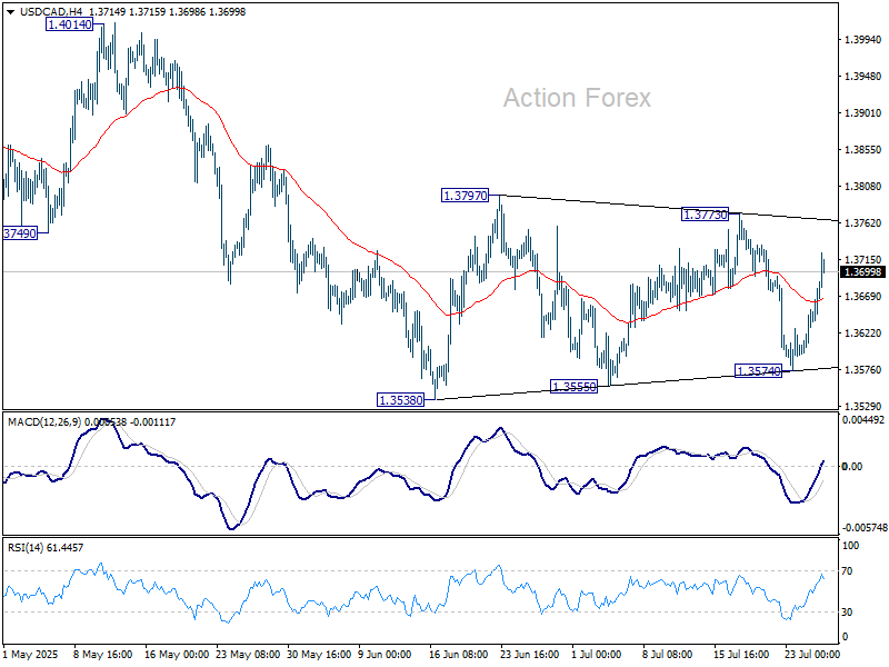 USD/CAD minulý týždeň klesol na úroveň 1.3574, ale odtiaľ sa výrazne odrazil. Predbežný pohľad na tento týždeň je neutrálny. Výhľad zostáva medvedí dovtedy, kým je udržaná rezistencia na úrovni 1.3773. Prelomenie úrovne 1.3574 naznačí, že konsolidačný vzorec od úrovne 1.3538 bol ukončený a rozsiahlejší pokles od úrovne 1.4791 je pripravený pokračovať cez úroveň 1.3538. Avšak, pevné prelomenie úrovne 1.3773 bude znamenať, že teraz koriguje celý pokles od 1.4791 a namiesto toho zacieli na rezistenciu 1.4014.