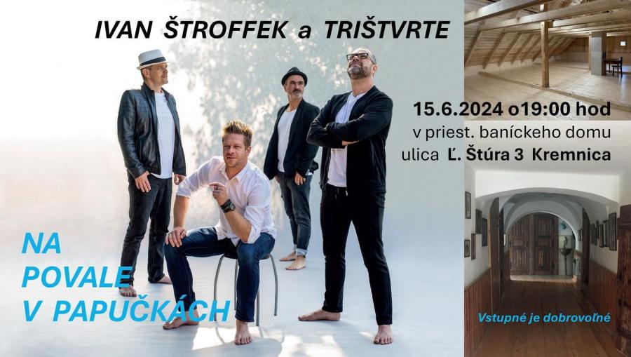 Ivan Štroffek je známy svojím autentickým prejavom a hlbokým spojením s hudbou, čo určite prinesie nezabudnuteľný zážitok pre všetkých návštevníkov. Spolu s kapelou Trištvrte sa postarajú o príjemnú a uvoľnenú atmosféru, ktorá bude umocnená intimitou podkrovia baníckeho domu.