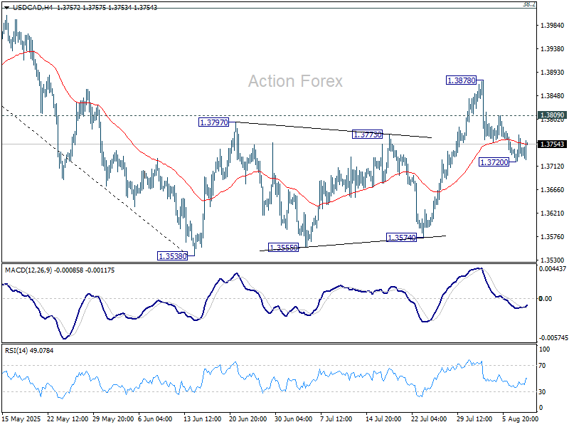 Denné pivoty: (S1) 1.3723; (P) 1.3748; (R1) 1.3775;