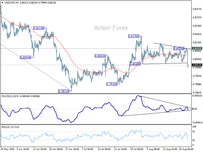 Z širšej perspektívy, dlhodobý klesajúci trend od maxima 1.0342 z roku 2017 pokračuje. Ďalším cieľom je 100% projekcia z maxima 1.0146 (2022) na 0.8332 od 0.9200 na úrovni 0.7382. Za každých okolností, výhľad zostáva negatívny, pokiaľ bude rezistencia na úrovni 0.8475 držať.