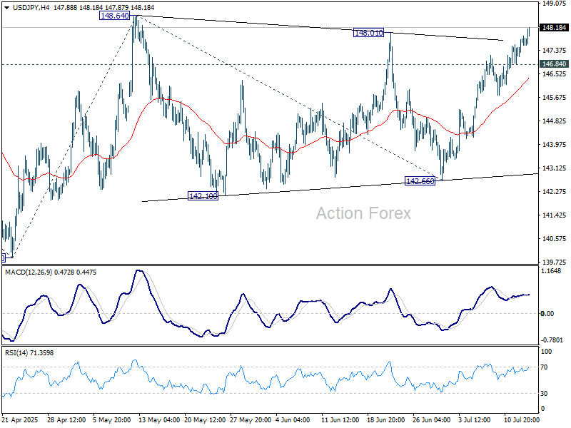 Posledné dianie na grafe USD/JPY naznačuje, že korekčný vzor, ktorý sa vyvíjal od úrovne 148.64 a dosiahol úroveň 142.66 prostredníctvom troch vĺn, sa zrejme skončil. Aktuálny prelom nad úroveň odporu 148.01 podporuje túto teóriu.