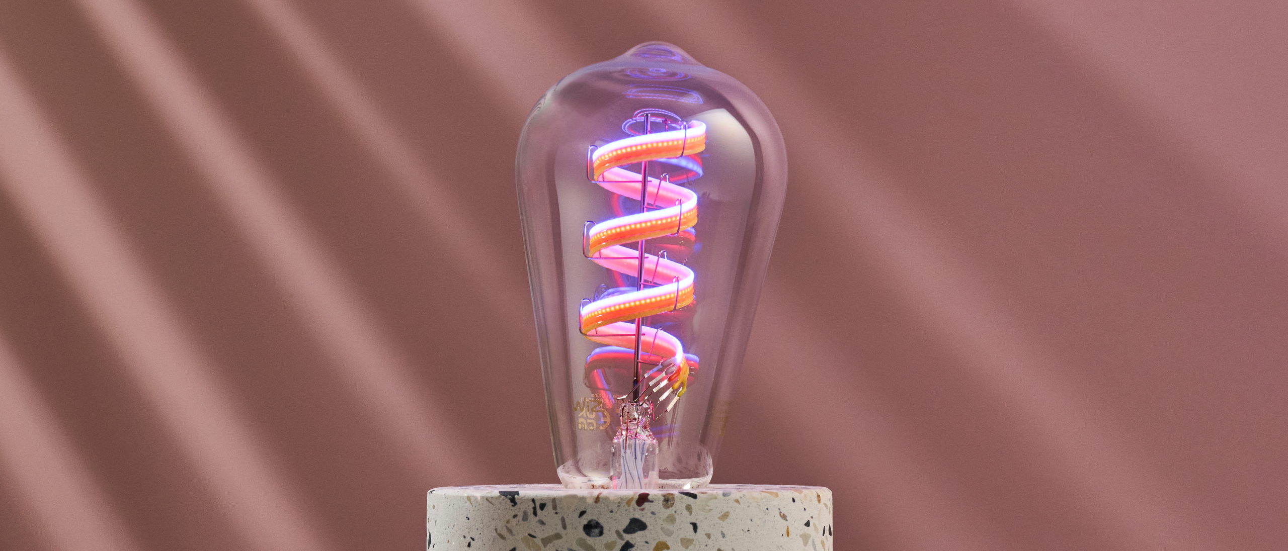 WiZ Filament Bulb Clear 25W ST19 E26 je inteligentná žiarovka meniaca farby, ktorá namiesto tradičného vlákna obsahuje vinutý LED pásik.
